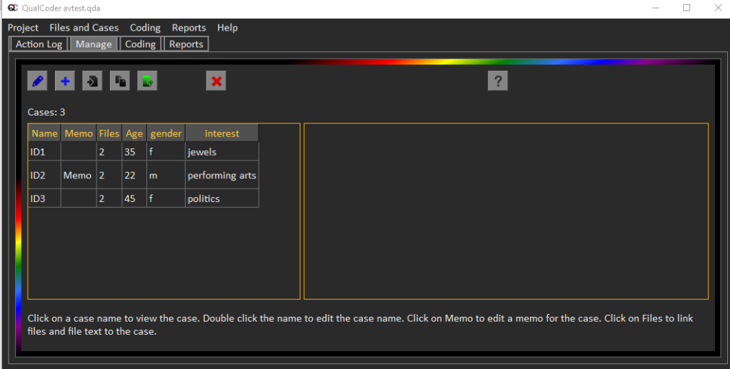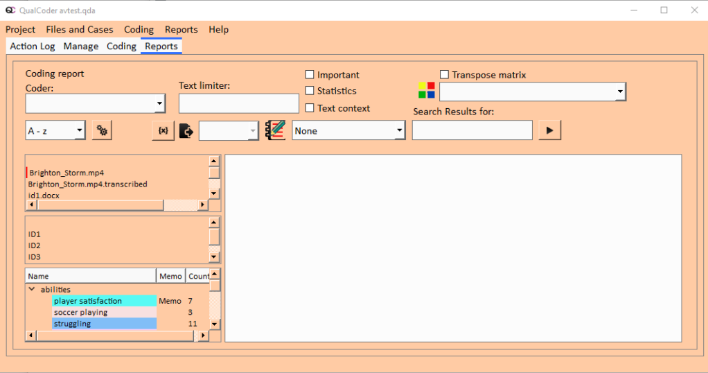 Added options to the matrix. So can have codes/categories by file or by case.\